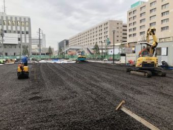 • 芝生の下にグラスミックスを施工中