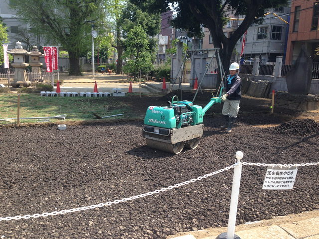 高空隙・目詰まり抑制貯留浸透基盤材 施工中