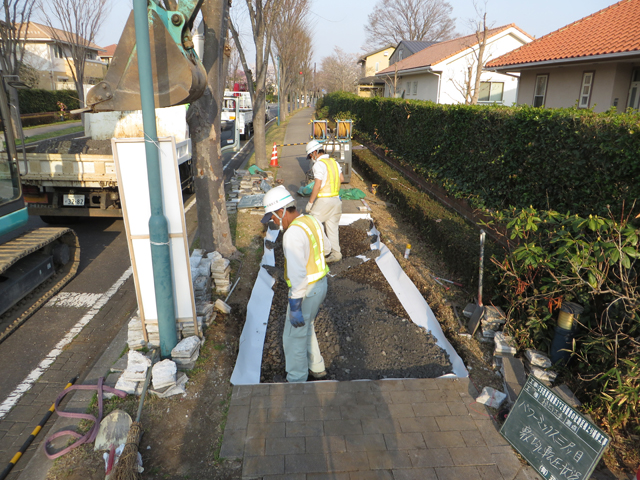 主説明 不織布に防根忌避剤を添着したエッジング用シート。舗装下や埋設管に根が入り込むのを防ぎます。薬剤は水に不溶で揮発性がなく、ほとんど溶出しにくいことが特徴です。またシートは空気や水を通すため、樹木の根上がり防止用として水平使用することも可能です。成分が溶出しない為、地下水や農業用水の汚染の恐れがありません。