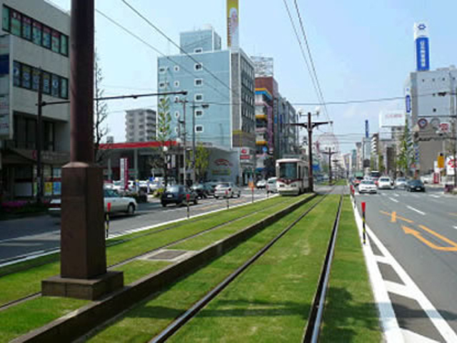「鹿児島市 市電軌道敷緑化整備事業」鹿児島市