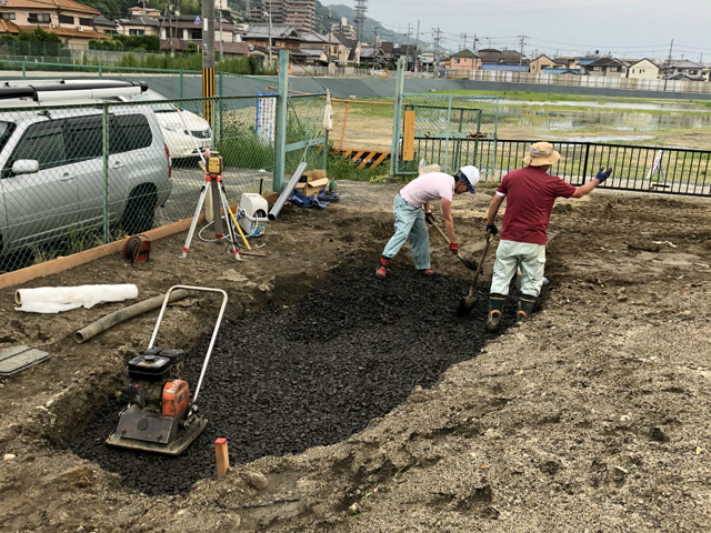 芝生地の排水層に使用