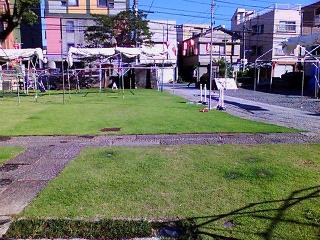 雨水を芝生下層の雨水貯留浸透基盤へ誘導することで、灌水に頼らずに湿潤な土壌環境を維持。夏場でも活発な蒸散が行われていることがわかる。
