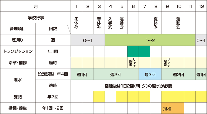 おすすめ芝生種類 おすすめ基盤土壌 校庭の特徴 概要