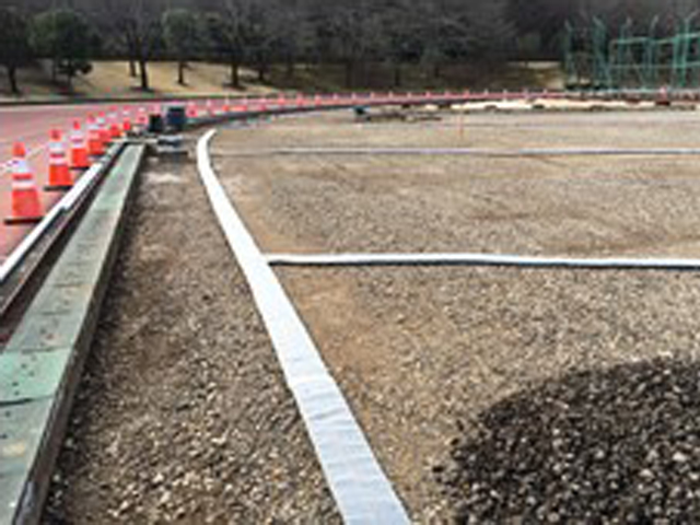 • 暗渠排水管や勾配を取るなど路盤排水性を必ず確保してください。