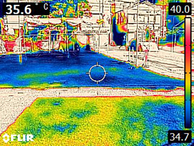 地面からの照り返しが抑制されることで、子供達の体感温度が下がります。人が感じる校庭での体感温度は (気温+地表面温度)÷2 で計算することができます。例えば、気温35℃ 地表面温度52℃ 芝生表面温度32℃ の場合では、土の校庭の体感温度は43.5℃に対し、芝生の校庭の体感温度は33.5℃です。