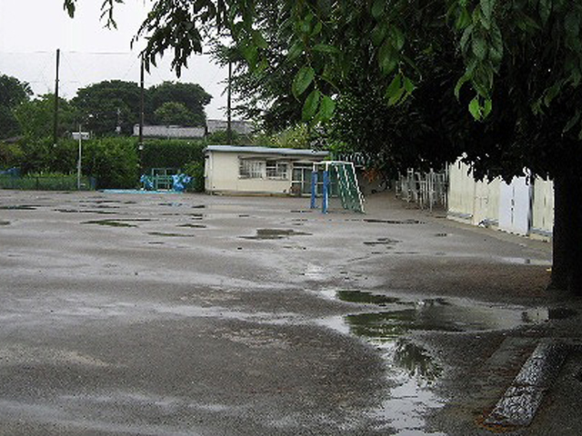 一般的な土の校庭の場合、降雨後は地面がぬかるみ、しばらくの間使用ができません。グラスミックス工法による芝生は、雨水の保水・浸透能力が高いため降雨後すぐに使用することが可能です。