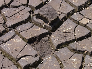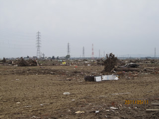 写真1、2は、津波で海水をかぶって被害を受けた水田の2ヵ月後の状態です(仙台市内)。まだ瓦礫の撤去は進んでいませんでした。表面には厚く汚泥がたまり、クラックや塩の析出、また異臭の発生などが見られました。一番の問題は、除塩に必要不可欠な排水機能を確保するための排水機場が破壊されていたことです。さらに土地そのものが沈下したことも重なり、復旧を困難にしていました。